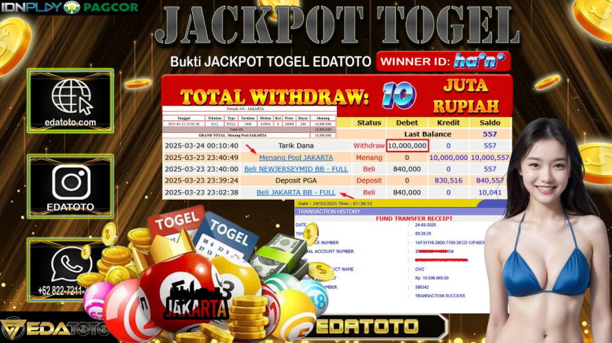 Selamat Kepada Pemilik user ID : z*m*ud Hari/Tanggal : Sabtu / 26 , MARET 2025 Jackpot : Rp. 10.000.000 JT . . .