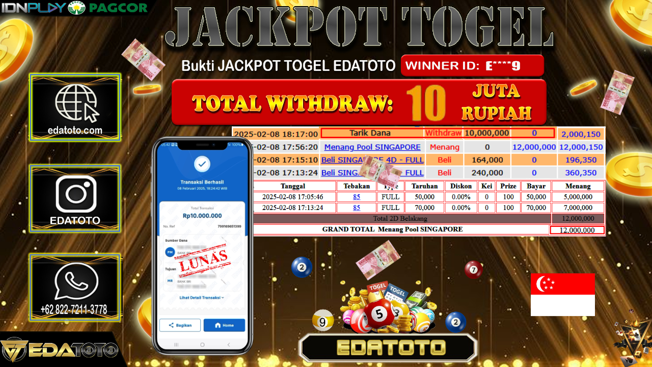 Selamat Kepada Pemilik user ID : AL****0 Hari/Tanggal : Jumat / 07 , FEBRUARY 2025 Jackpot : Rp. 16.500.000 JT . . .
