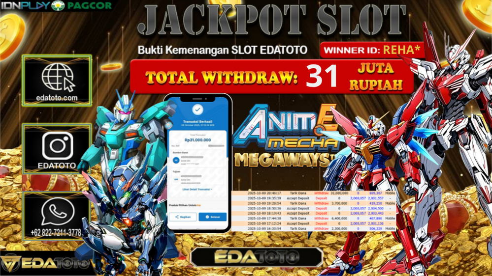 Selamat Kepada Pemilik user ID : Reha* Hari/Tanggal : Jumat/ 10, Oktober 2025 Jackpot : Rp. 31.000.000 JT Permainan : Anime . . .
