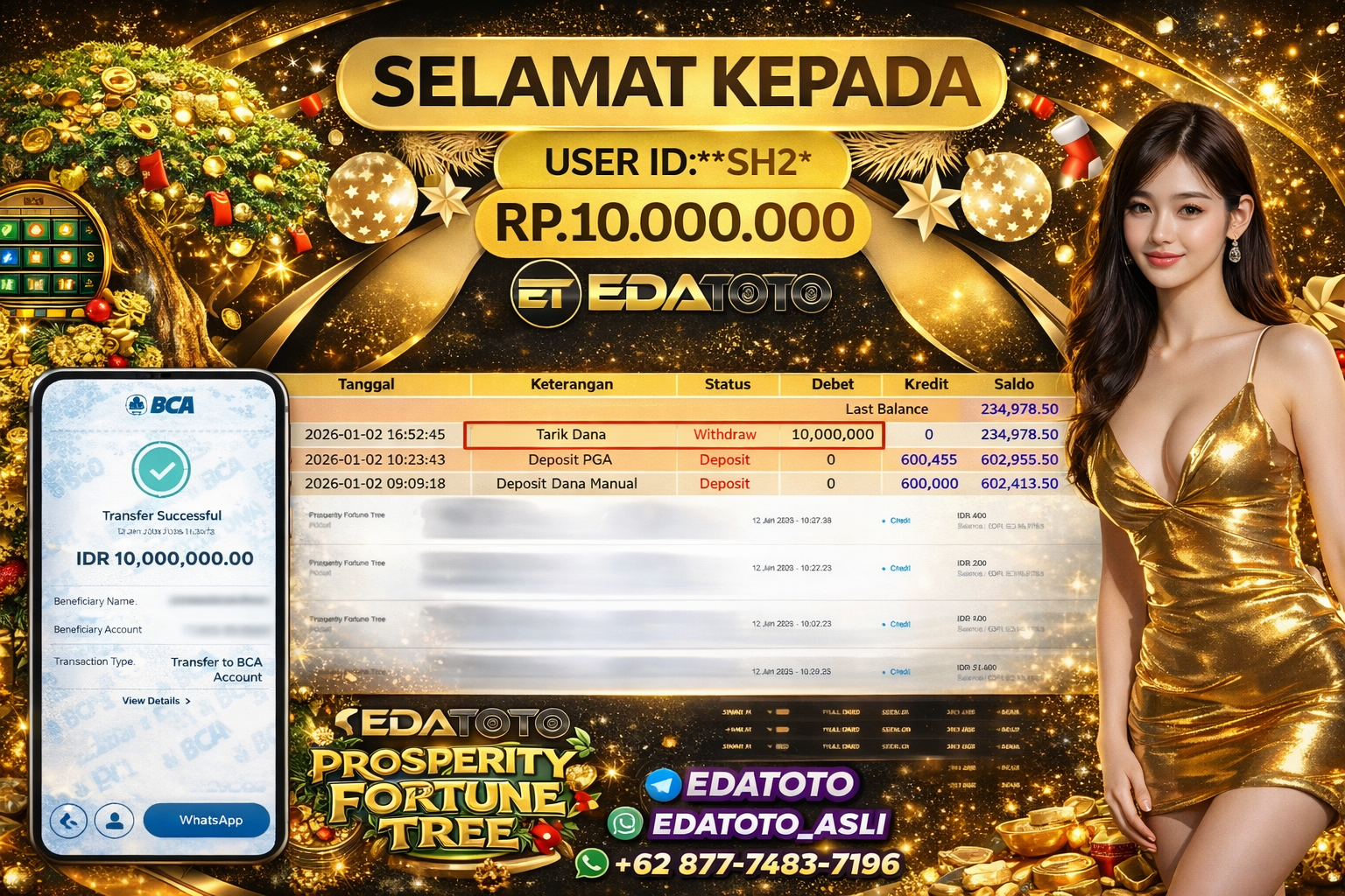 Selamat Kepada Pemilik user ID : **SH2* Hari/Tanggal :senin/ 12, Januari 2026 Jackpot : Rp. 10,000,000 JT Withdraw : 10,000,000 . . .